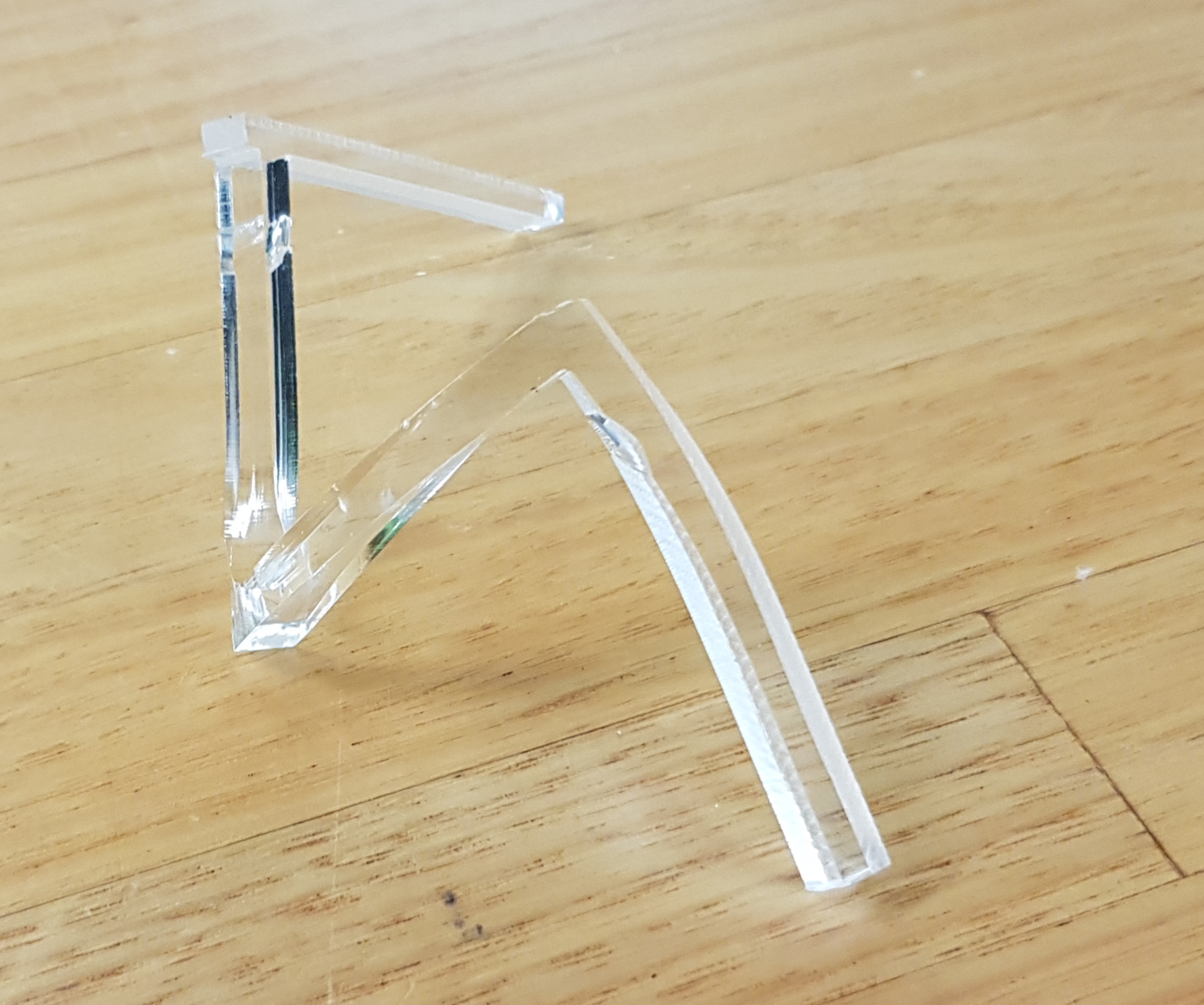 Today’s task was to design small stands to temporarily hold my skew bars in place for when I will heat and bend the skew curves of acrylic to meet these bars. Sounds a bit skewiff doesn’t it – anyway it is okay in my head (I hope).