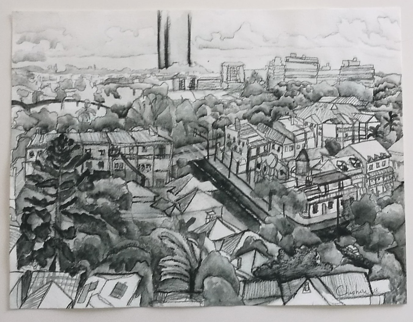 Because I enjoyed drawing and developing the sketches from the windows, I just might accept the invitation to join the Urban Sketchers in Townsville when I can drive. However, the process of my ink pencil experiments will eventually be shared with my students. They could also enjoy and have fun going to another space in time with the medium – always a positive with special folk who need help.