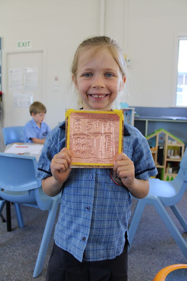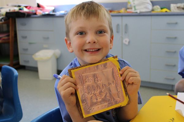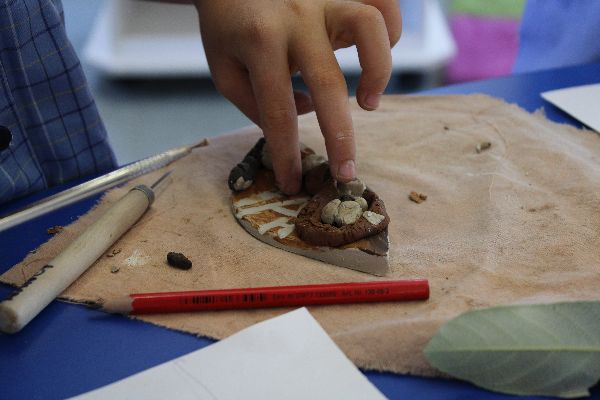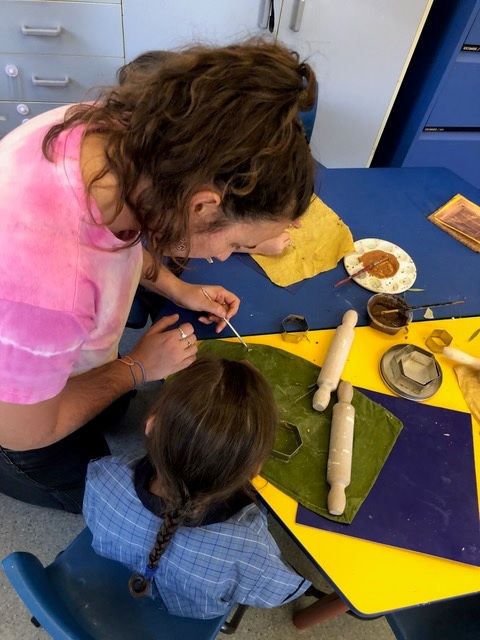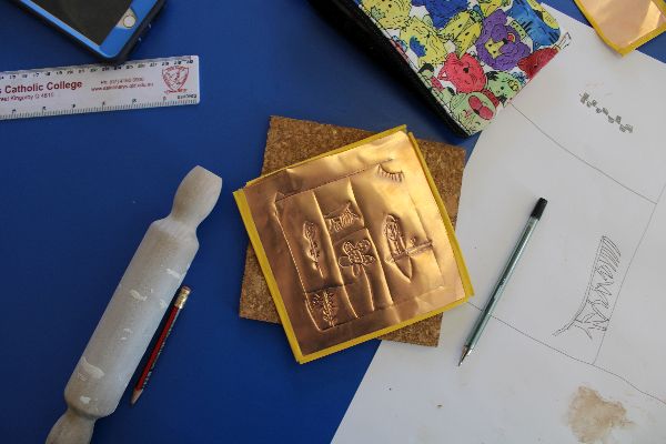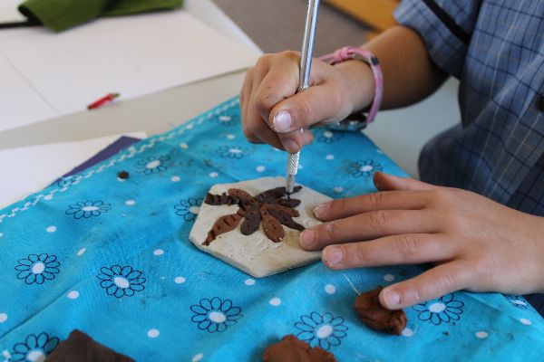 The students enjoyed being able to continue to extend their drawing skills further using clay and metal. They were able to explore how their drawings and designs looked using different mediums. The students loved rolling, cutting and stamping the clay to make the tiles.