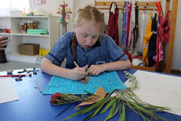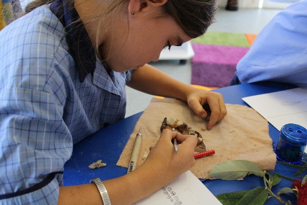 Keen botanist and Barcaldine local Jenny Mace got involved before the workshops began, taking the students and teacher of Level 3 (years 3-6) on an excursion around town to observe, photograph and learn about the local flora.