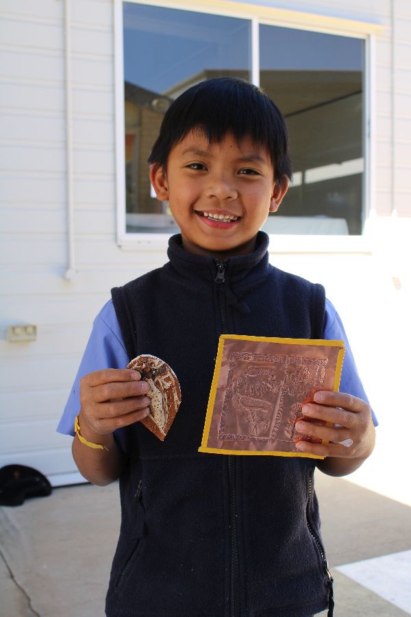 Students participated in botanical drawing classes and made clay, aluminum and copper tiles which will be assembled into a collage and installed in the display cabinet at the school entrance. The students’ botanical drawings will be entered in the Barcaldine Show and Barcaldine Art Exhibition.