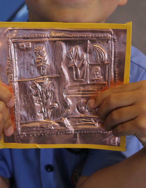 Drawing shapes with clay coils and onto the metal shim provided them further opportunity to improve their skills. “Watching their faces as their designs were revealed was brilliant!” enthused Mrs Watchel.