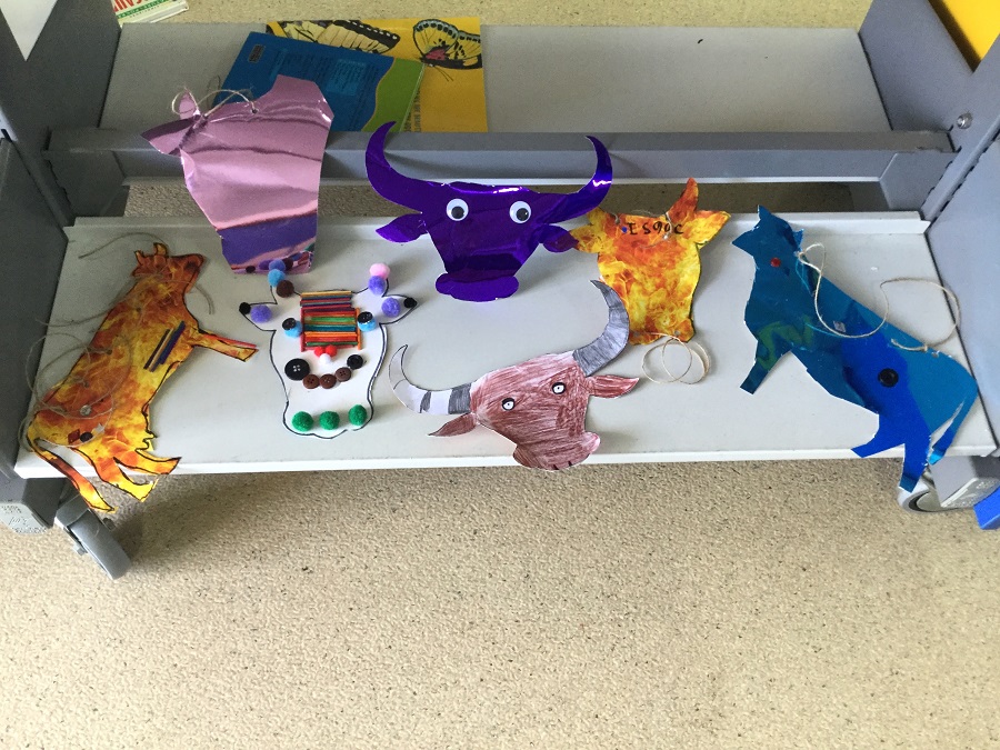 “The students learnt how to use wire to construct meaningful sculptures and add beads to this for colour and balance. The students also used collage materials to produce artworks that were meaningful to them – mainly of cattle and horses – to represent their home lives.”