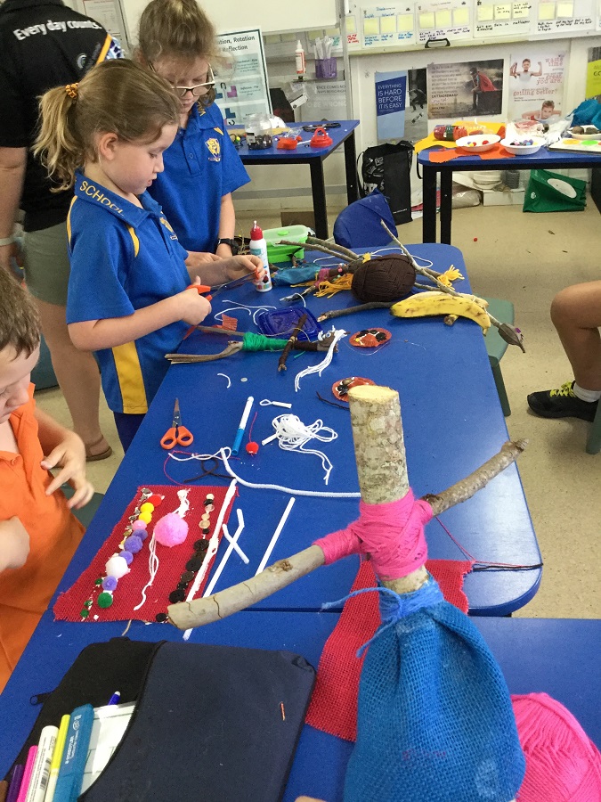 “It was great to see the detail added by all students and surprising to see the kindy students maintain their attention span for an extended period of time to enable the stick people to be created successfully. For 10 four year olds to spend two hours constructing an artwork is incredible!”