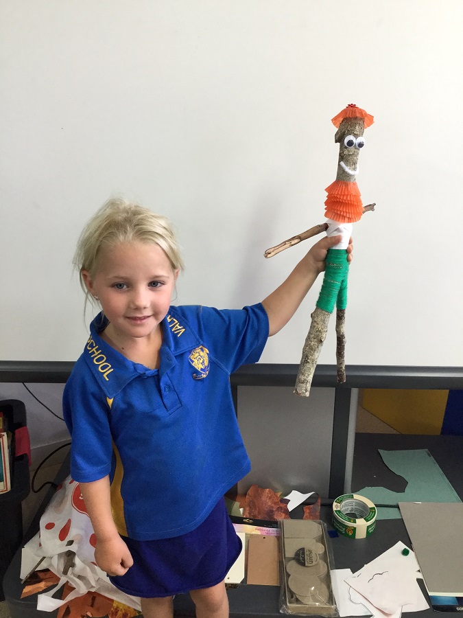 “The students learnt how to use air-dried clay correctly and added colour with the use of ink. They also acquired to skill of using recycled materials and sticks found in the school ground to create stick people by wrapping them with wool and materials.
