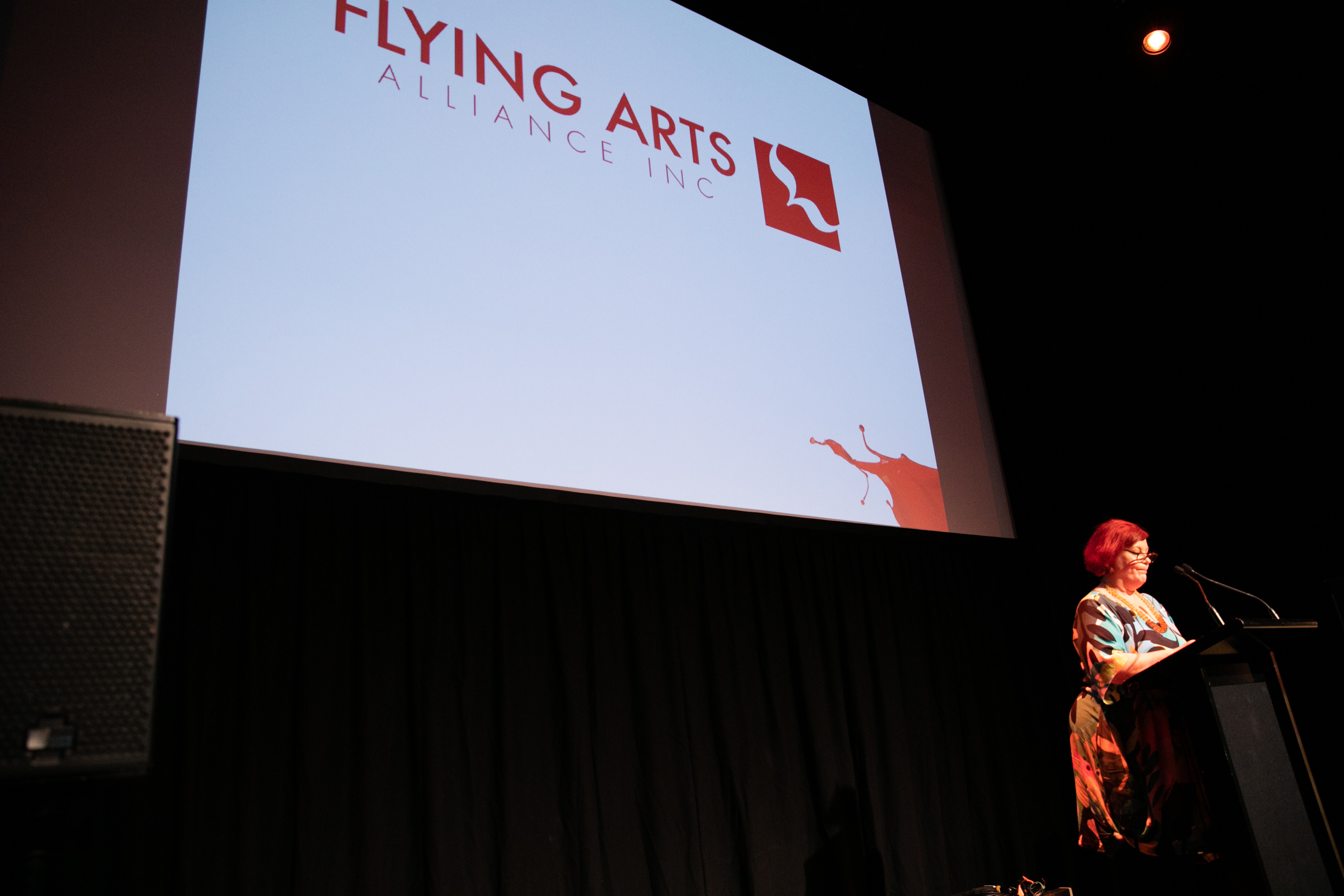 - First, our hardworking and occasionally inspired Flying Arts Board, and our overworked and inspiring staff, led from the front by the CEO, Kerryanne Farrer, who is about to show you some very pretty pictures. Nearly all of both groups are here tonight, ready to give the Flying Arts spiel and take your orders.