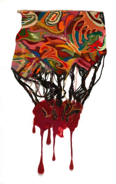 Medium: Handwoven tapestry; wool, cotton, metallic yarn, acrylic paint and felted wool (2014)