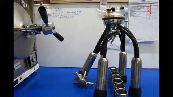 Set in the prep-room at my parent’s veterinary practice, ‘The Rescue’ alludes to the decline of the dairy industry in Queensland after its deregulation in 2000. Performed by left over milking machine parts from my father’s defunct consultancy business, ‘The Rescue’ also makes reference to the trials my family endured in attempting to survive within the dairy industry through those difficult times. The notion of ‘Vital Signs’ is also explored through childhood memories of growing up around a family business in a rural town, and how that has shaped my creativity. Playful and naïve, the work echoes musings on long hours spent waiting at the clinic with only my imagination and a box full of forgotten parts to entertain me. Creating the animation was, in a way, a re-enactment of those times – the movement of the objects intuitive decisions based on years of imaginative play as a child.