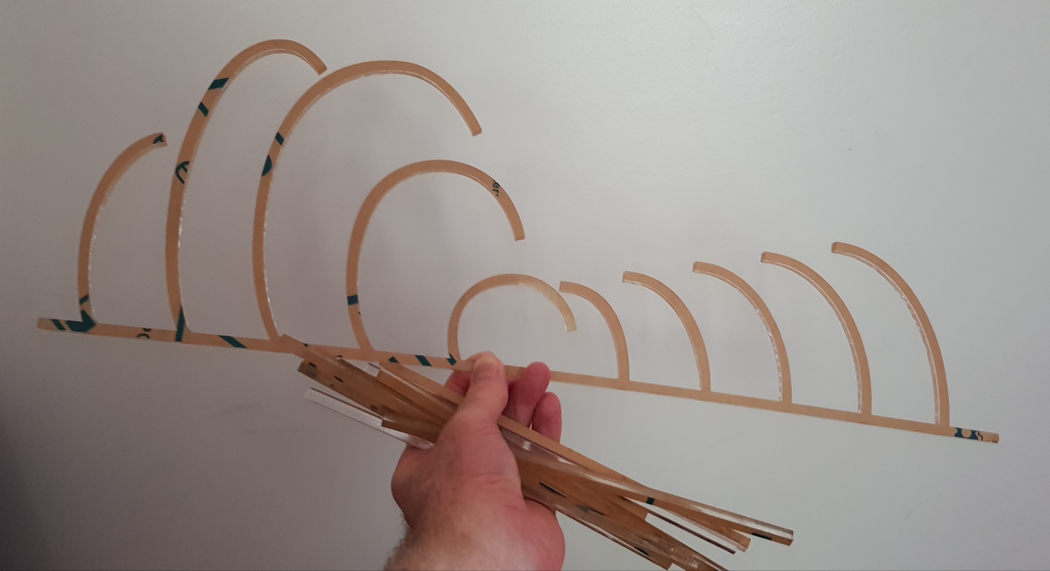 The even curves on one side of the sculpture were easy but getting the dimensions for the skewed bars boiled down to guesstimation.