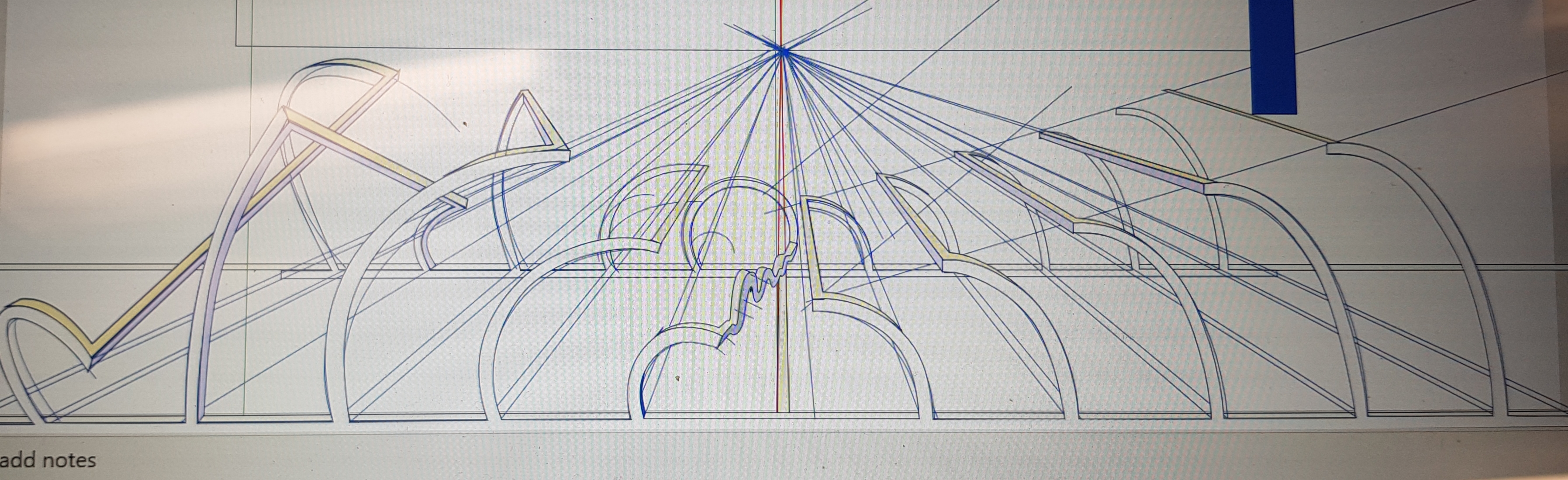 So the stage is now set to get the angles of the elevated red bars worked out so as to proceed to making drawings for laser cutting.