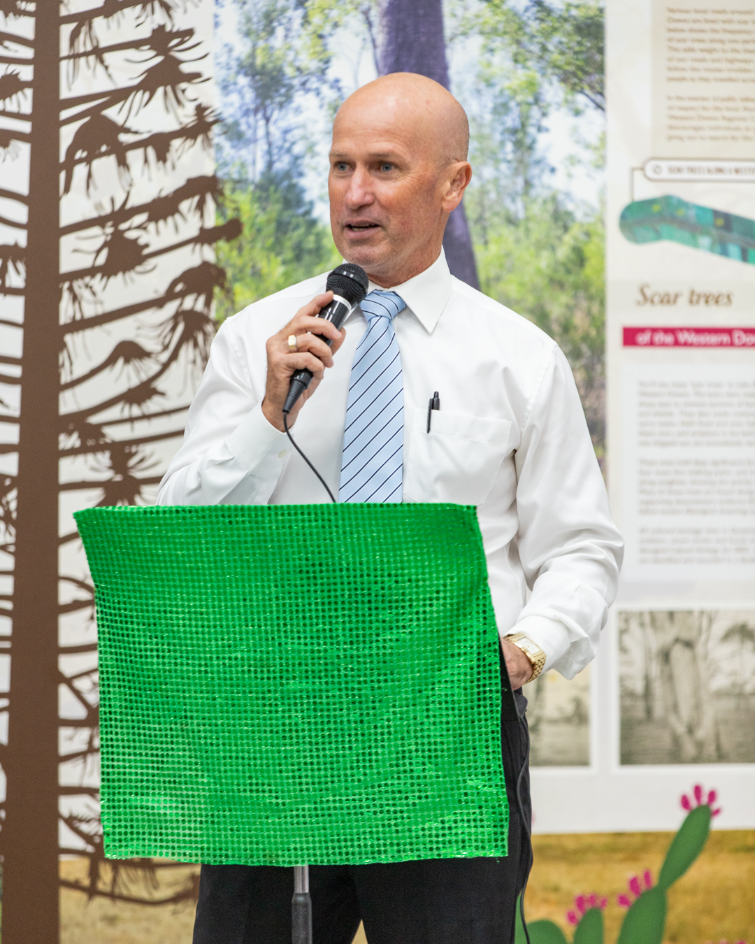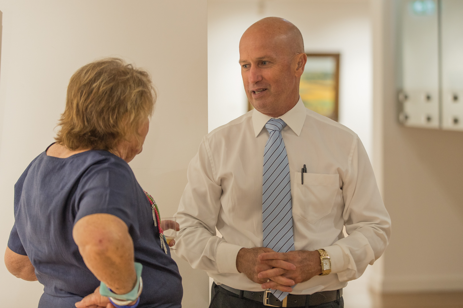 The opening event at Dalby’s Gallery107 included addresses from Western Downs Councillor Ian Rasmussen, President of Gallery107 Caroline Tillman and showing artist Merv Moriarty.