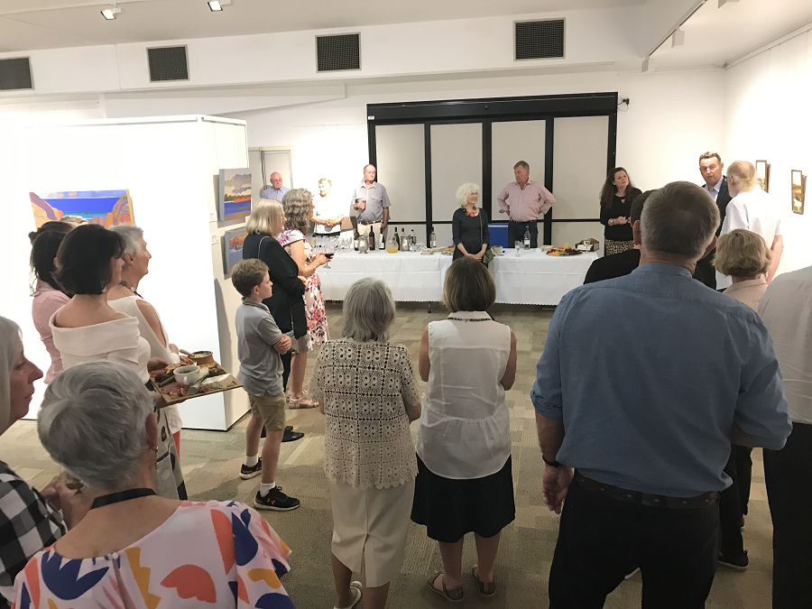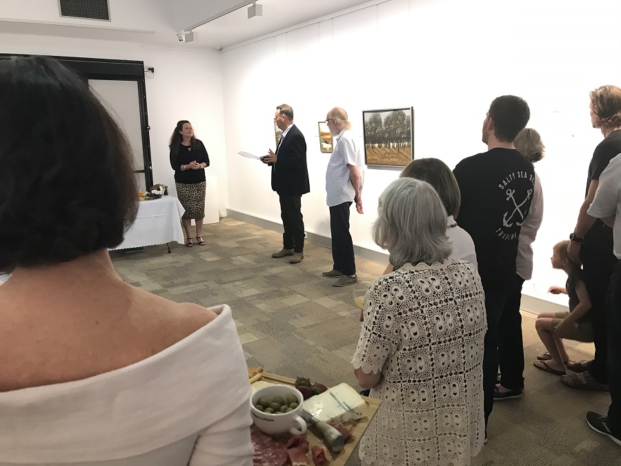 The Gallery Management Committee, volunteer friends of the Gallery, exhibiting artists and members of the local Roma community celebrated the culmination of many months of planning with the official opening of the exhibitions on Friday 27 September. The evening was officiated with speeches from the Chairperson of the Roma on Bungil Board, Di Griffin, featured artist Mervyn Moriarty and Mayor of Maranoa Tyson Golder.