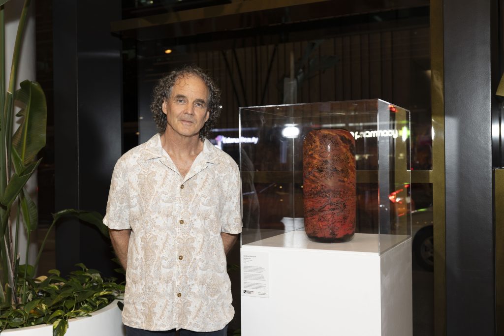 Image: Jonathon Westacott with his winning work, Banyena, at the 2025 QRAA Gala