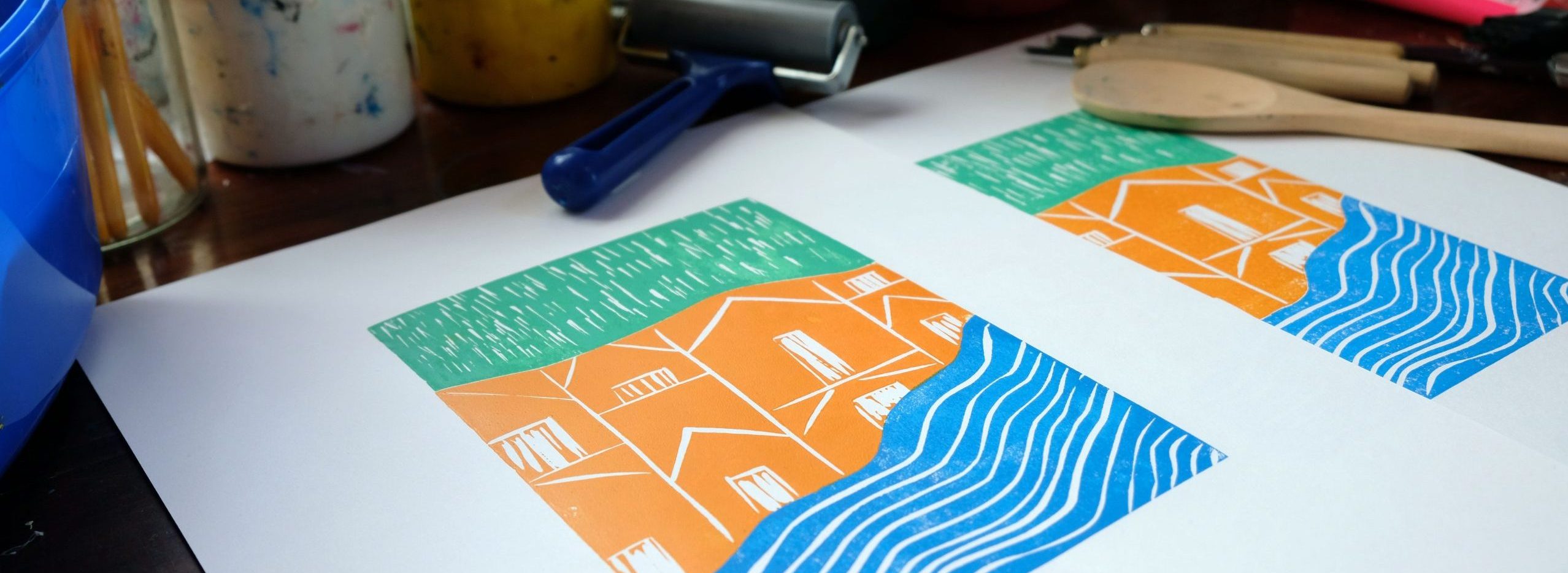 Each participant will be facilitated to create their own lino print design through the development of patterned, abstracted, and semi-abstracted landscape components. Landscape components could be anything from flowers to skyscrapers; anything that explores the notion of landscape. Participants will plan and carve a three-piece lino and then print their lino using multiple colours and hand-printing methods. Everyone will have the opportunity to create an edition of prints and to produce an experimental print by re-arranging their jigsaw lino.