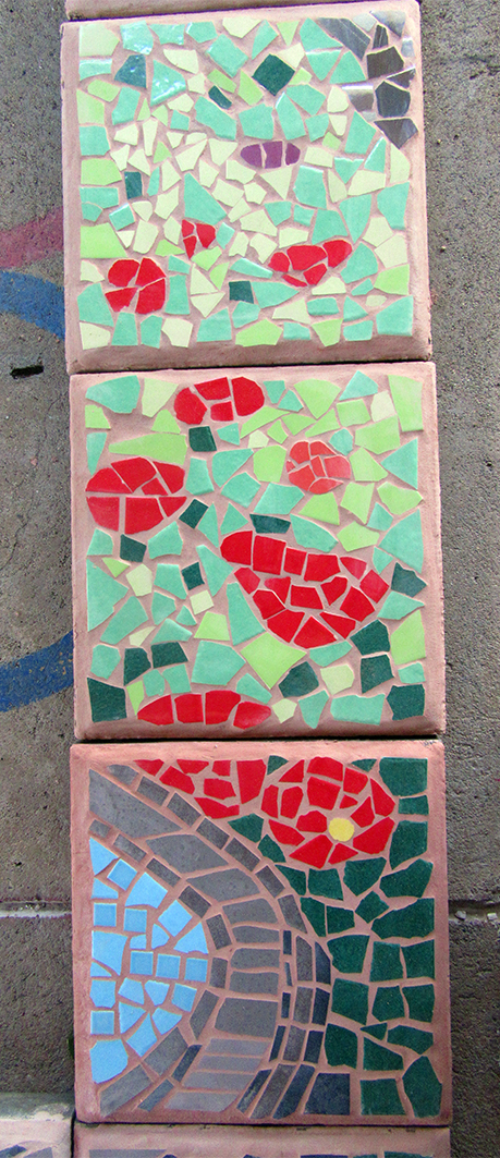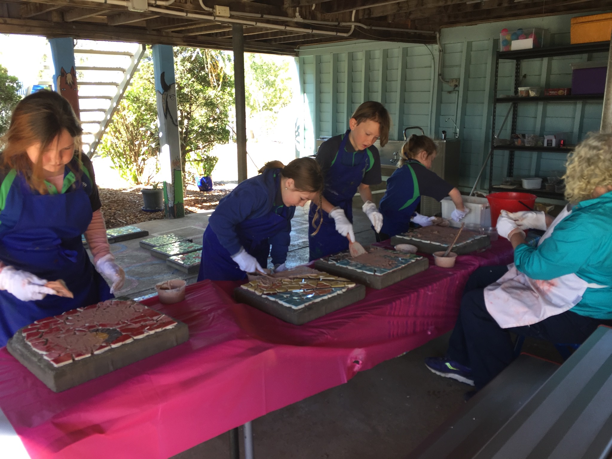 I facilitated a mosaic workshop where the participants and I constructed a mosaic narrative on 22 concrete pavers (400mm x 400mm). The mosaic pavers will be a feature of a new ANZAC Memorial installed in the school grounds at the entrance.