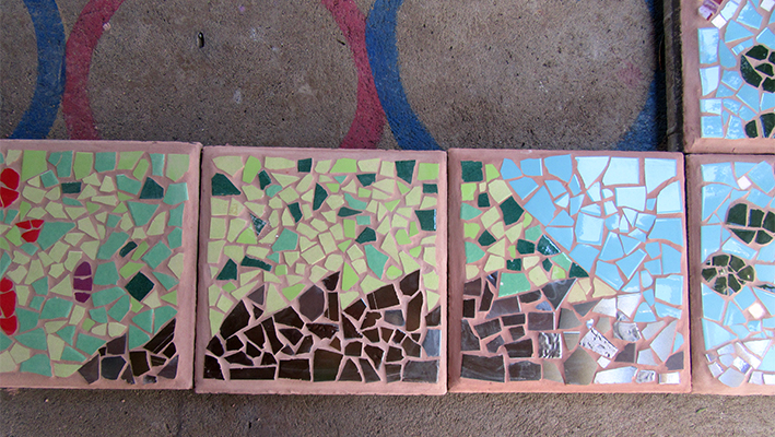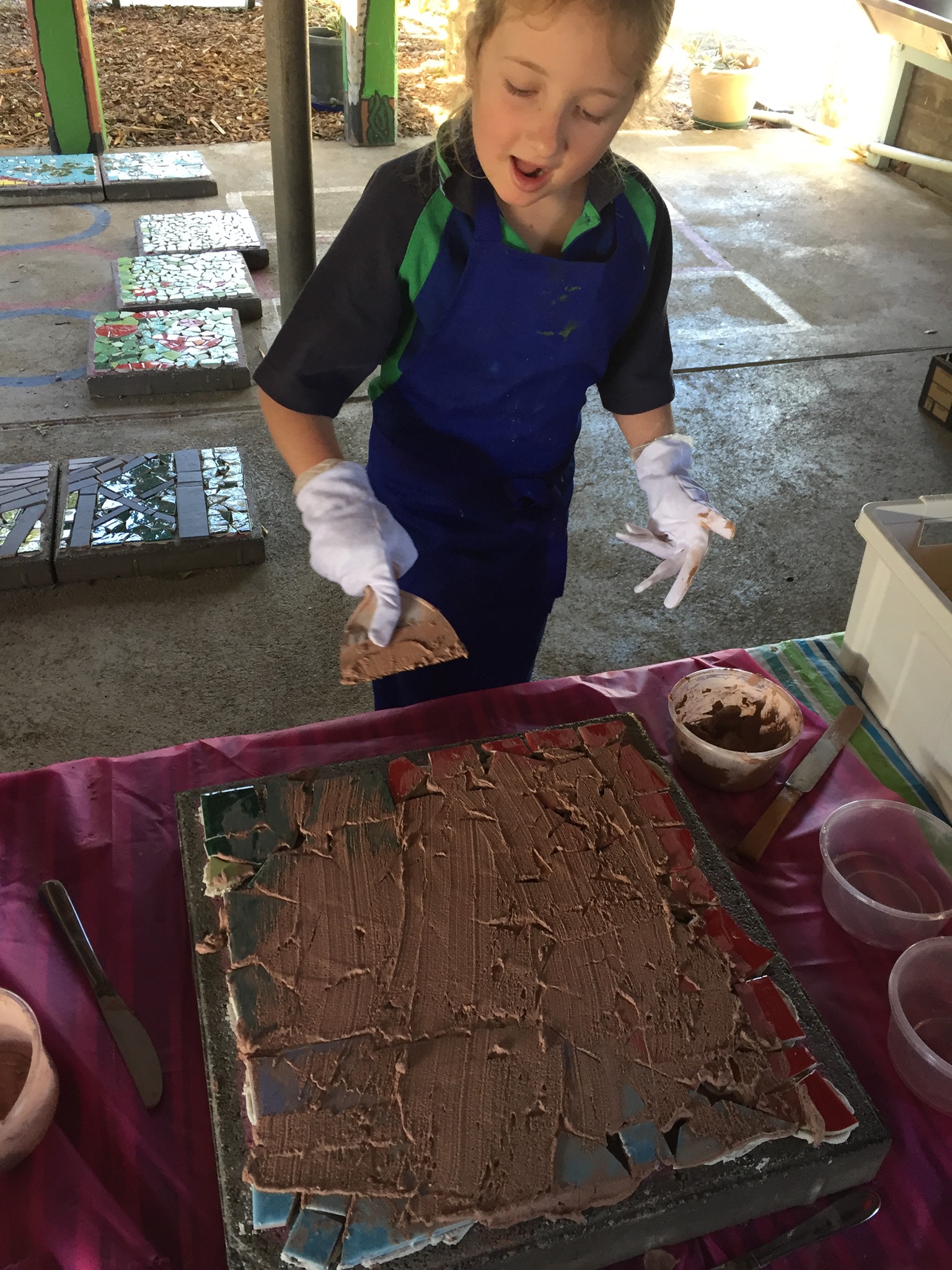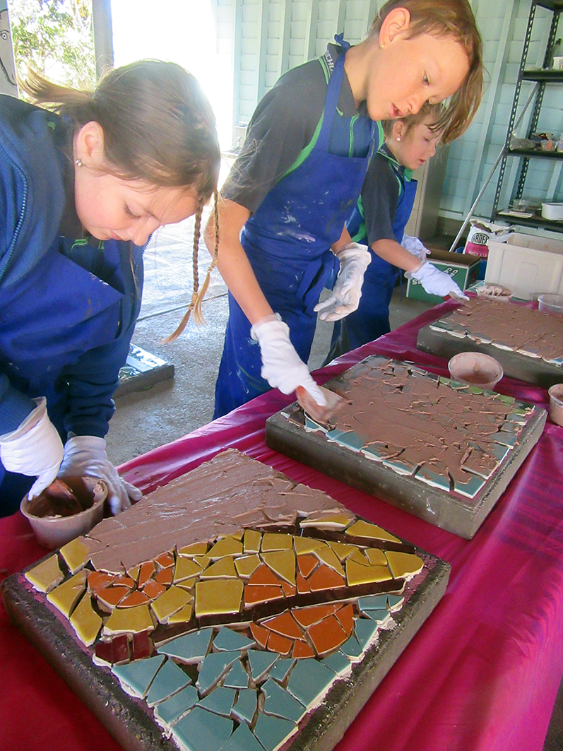 On Day 3, senior school students concluded the program by putting the finishing touches on the mosaic and sealing it with grout.