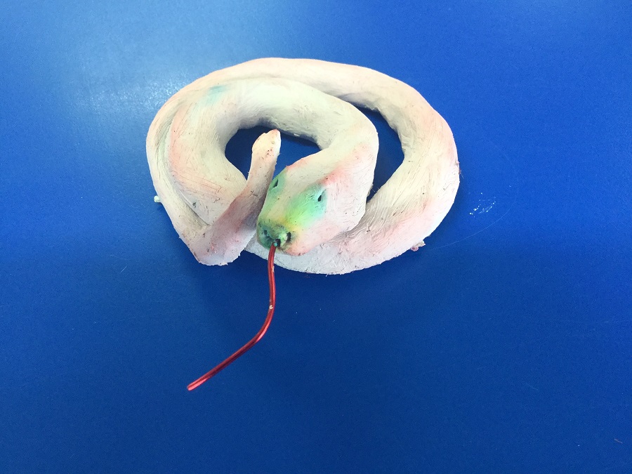 “The students learnt how to use air-dried clay correctly and added colour with the use of ink. They also acquired to skill of using recycled materials and sticks found in the school ground to create stick people by wrapping them with wool and materials.